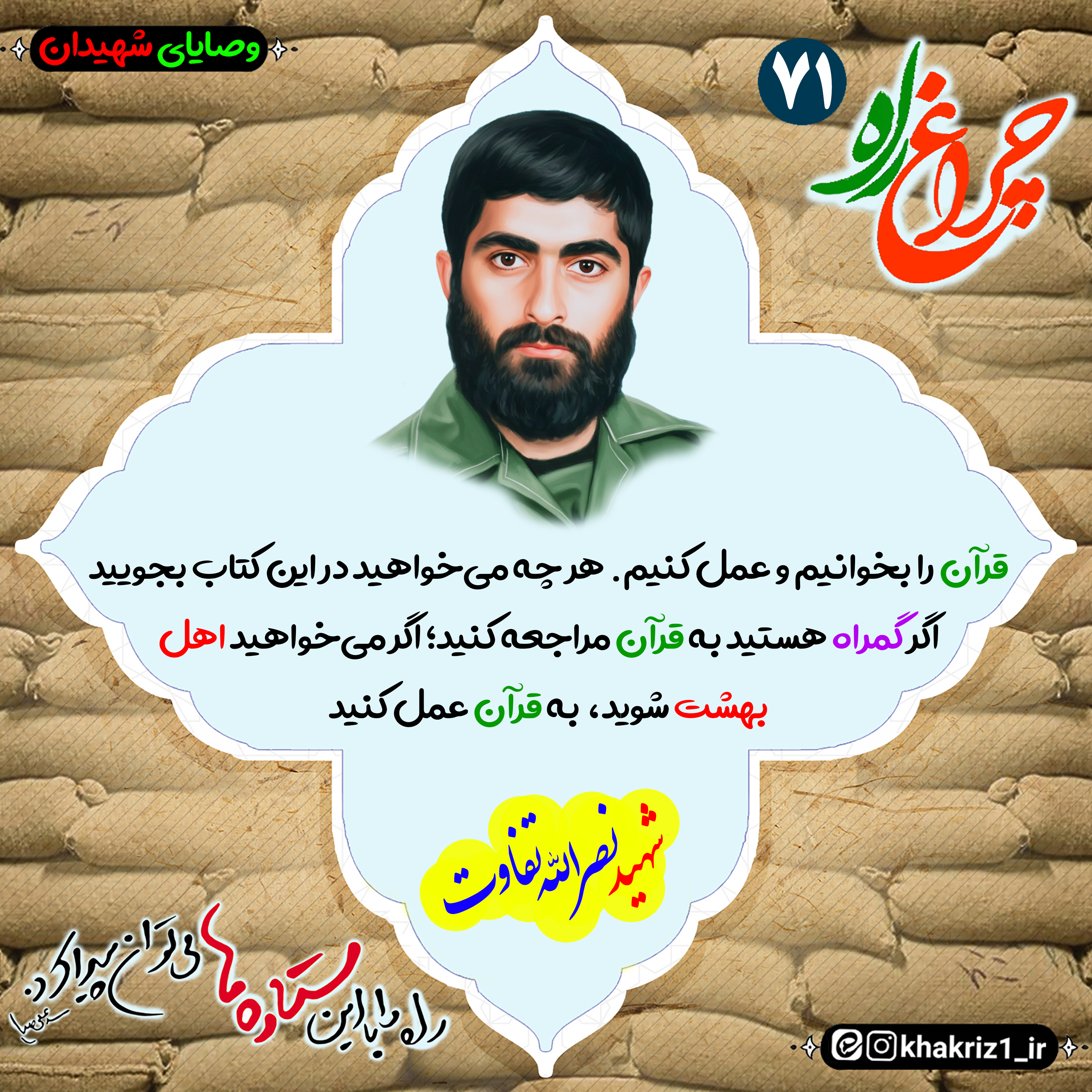 #کلام_شهید|قرآن را بخوانیم و عمل کنیم. هر چه میخواهید در این کتاب بجویید؛ اگر گمراه هستید به قرآن مراجعه کنید؛ اگر میخواهید اهل بهشت شوید، به قرآن عمل کنید...