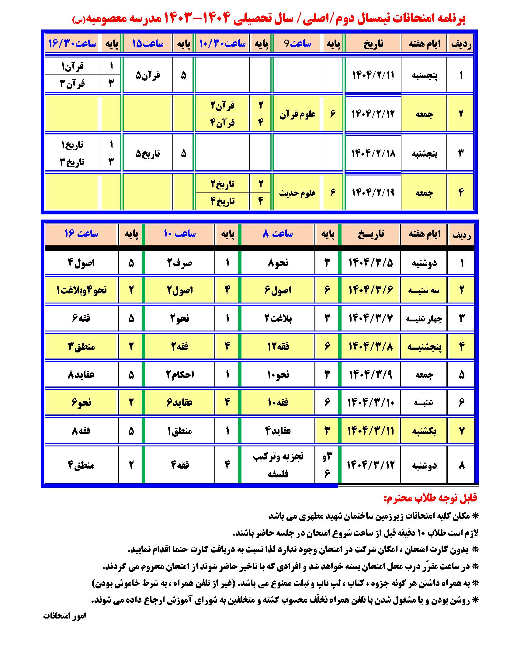 ❇️ برنامه امتحانات اصلي نيم سال دوم